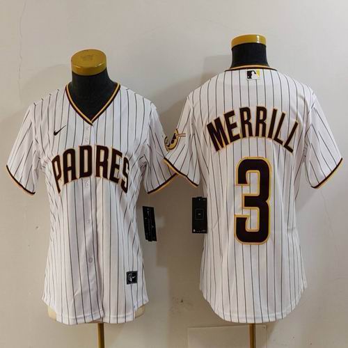Women Nike San Diego Padres #3 Jackson Merrill white MLB Baseball jerseys