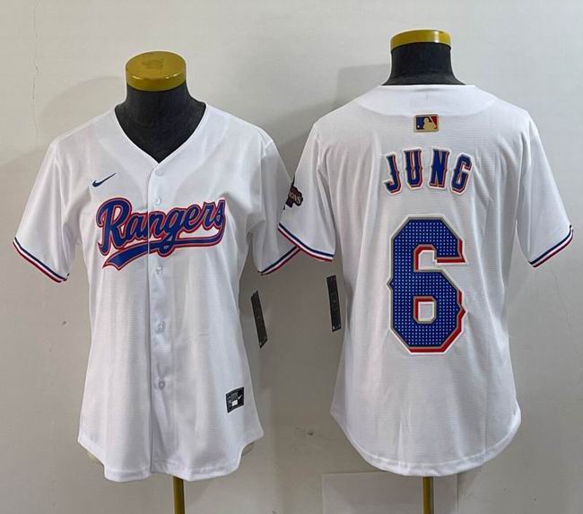 Women Nike Texas Rangers #6 Josh Jung white majestic baseball jerseys Champion patch-BD