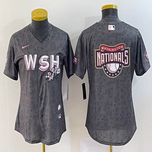 Women Nike Washington Nationals blank gray majestic baseball Jersey big logo-BD