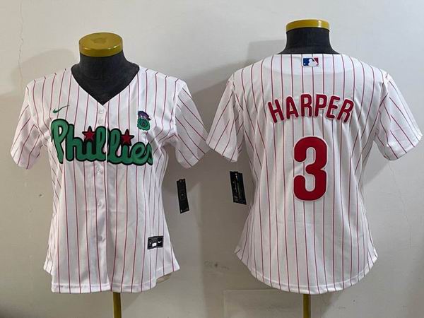 Women Philadelphia Phillies #3 Bryce Harper white majestic baseball jersey Joint name-BD 01