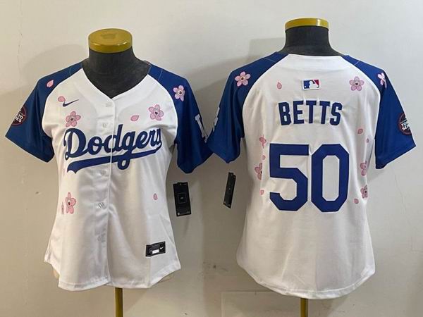 Youth 2025 Nike Los Angeles Dodgers 50 Mookie Betts white blue fashion majestic baseball jerseys Sakura plate 01