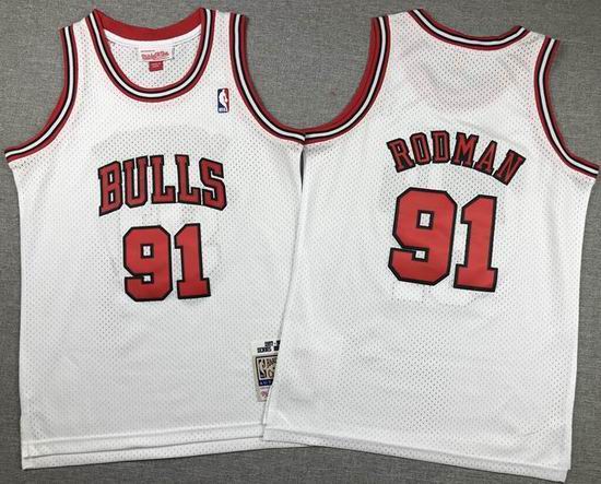 Youth Chicago Bulls #91 Dennis Rodman white Throwback nba basketball jerseys -XD