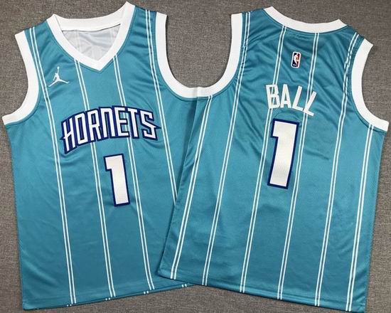 Youth jordan logo New Orleans Hornets #1 LaMelo Ball light blue nba Jerseys -XD