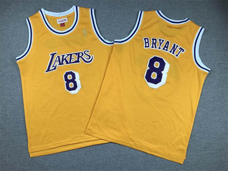 Youth Los Angeless Lakers #8 Kobe Bryant yellow Throwback basketball Jersey-XD