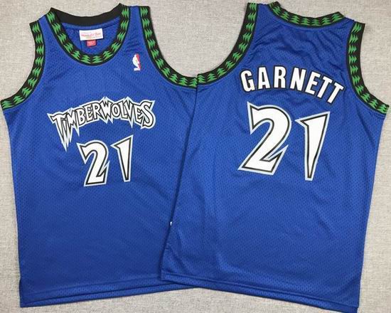 Youth Minnesota Timberwolves #21 Kevin Garnett blue Throwback basketball jersey-XD