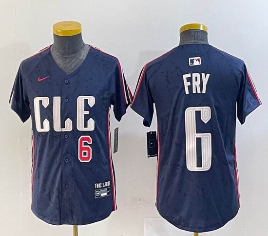 Youth Nike Cleveland Indians #6 Fry blue majestic baseball jersey -BD