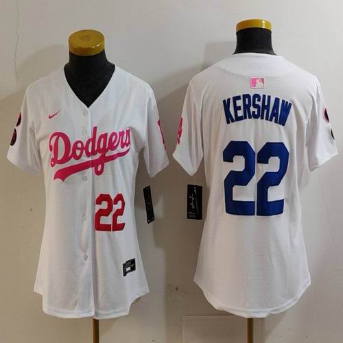 Youth Nike Los Angeles Dodgers #22 Clayton Kershaw white pink fashion MLB baseball Jersey-Joint name-BD 01