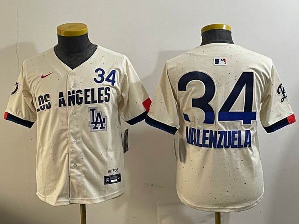 Youth Nike Los Angeles Dodgers #34 Fernando Valenzuela beige majestic baseball Jerseys city version-01