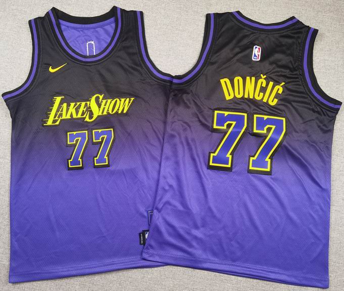 Youth Nike Los Angeles Lakers Luka Doncic #77 purple NBA Basketball jerseys city version-HL