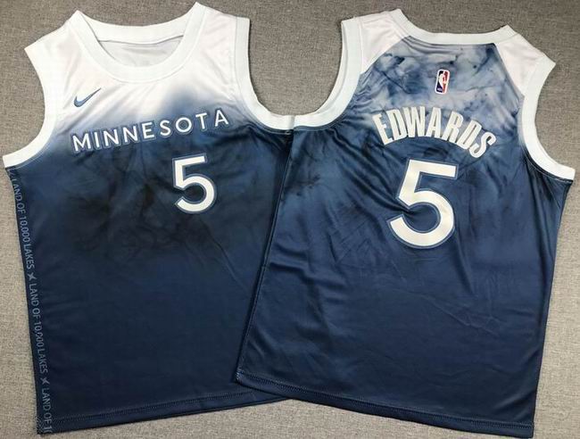 Youth Nike Minnesota Timberwolves #5 Anthony Edwards black blue basketball jersey-XD