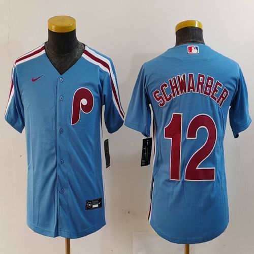 Youth Nike Philadelphia Phillies #12 Schwarber skyblue throwback majestaic baseball jersey