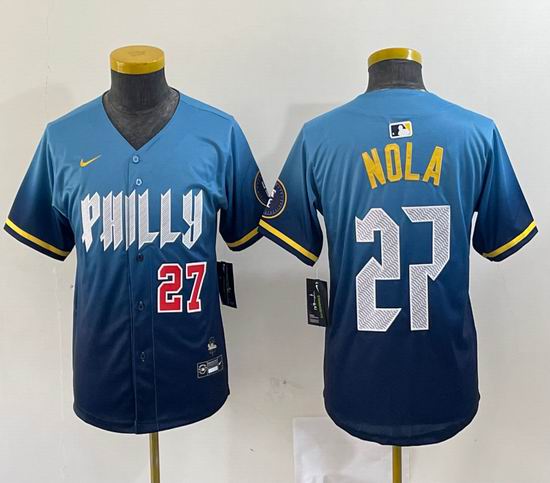 Youth Nike Philadelphia Phillies #27 Nola skyblue majestic baseball jersey city version-BD 03