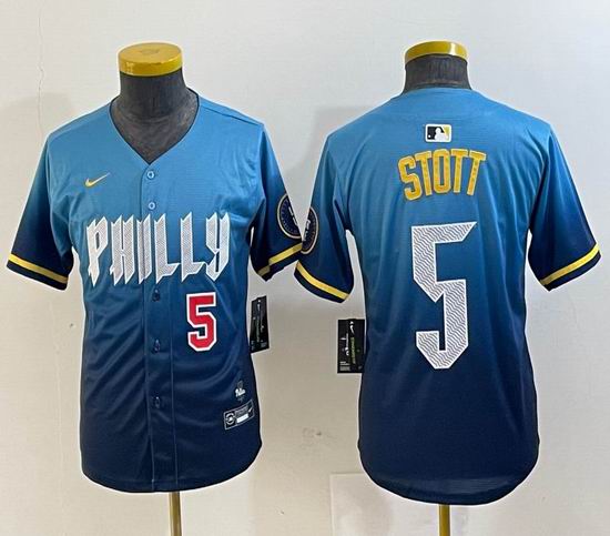 Youth Nike Philadelphia Phillies #5 Bryson Stott skyblue majestic baseball jersey city version-BD 02