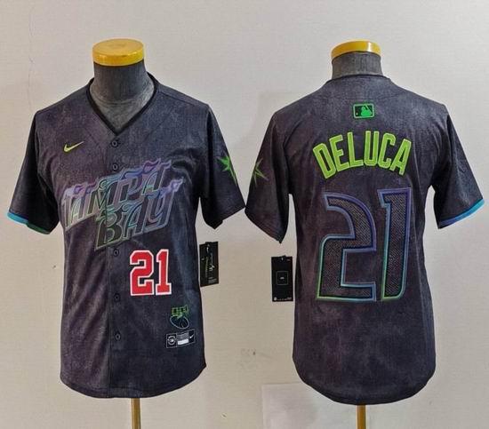 Youth Nike Tampa Bay Rays #21 Jonny DeLuca black majestic baseball jersey city version 02