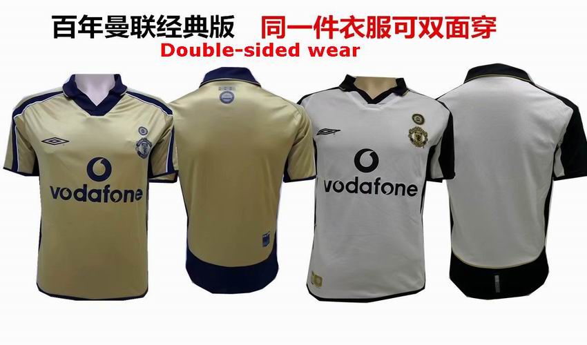 1902-2002 Manchester United thailand version throwback gold white blue soccer jersey away Double-sided wear