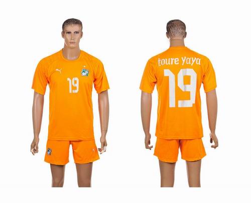 2014 World cup Ivory coast team TOURE YAYA 19 yellow soccer jerseys home