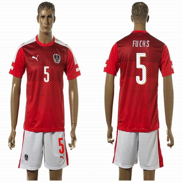 2016 Austria European Cup FUCHS #5 red white soccer jersey home