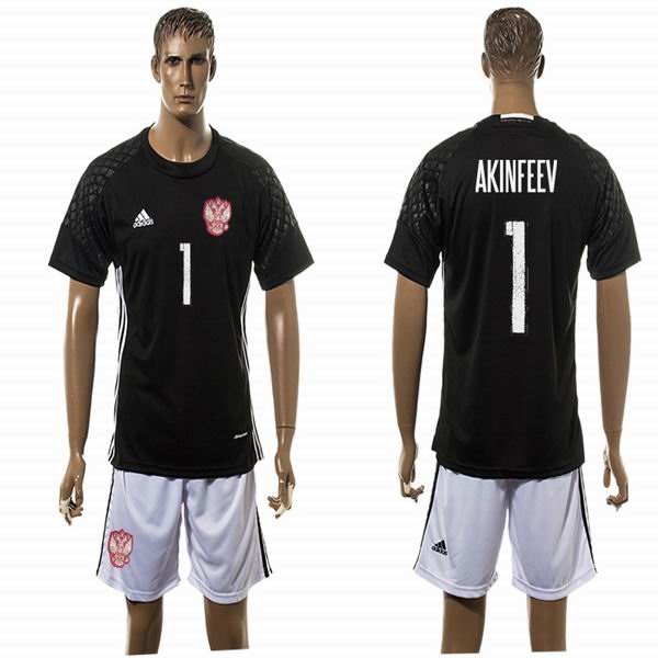 2016 Russia team AKINFEEV #1 goalkeeper soccer jersey black