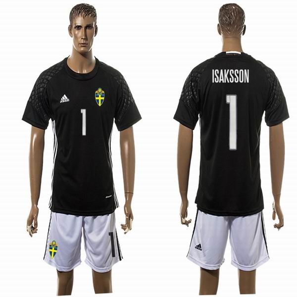 2016 Swedish ISAKSSON #1 goalkeeper soccer jerseys black white