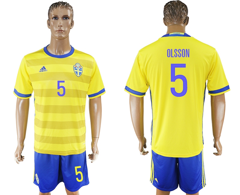 2017-2018 Sweden team OLSSON #5 yellow blue soccer jersey home