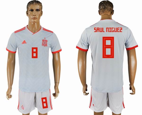 2018 World cup Spain team #8 SAUL NIGUEZ white soccer jersey away