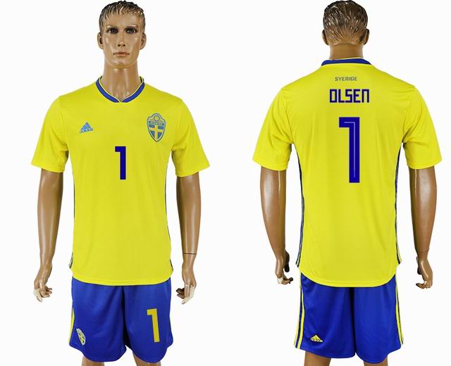 2018 World Cup Sweden team #1 OLSEN yellow soccer jersey home