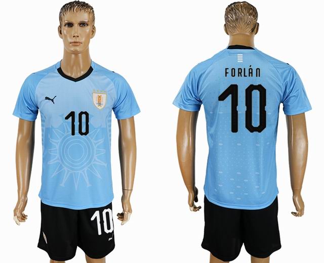 2018 World Cup Uruguay team #10 FORLAN skyblue soccer jersey home