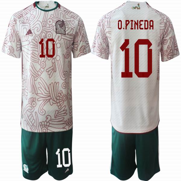 2022 World Cup Mexico Team #10 O.PINEDA white red green soccer jerseys away