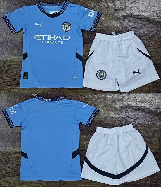 2024-2025 Manchester City club skyblue white kid soccer jerseys home