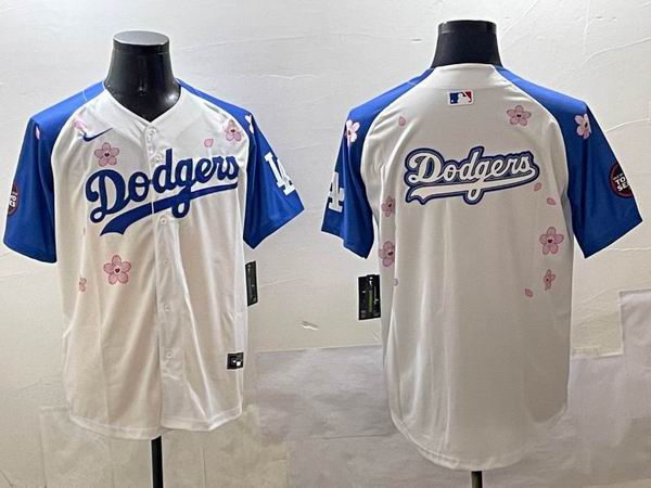 2025 Nike Los Angeles Dodgers blank white blue fashion majestic baseball jerseys Sakura plate 02