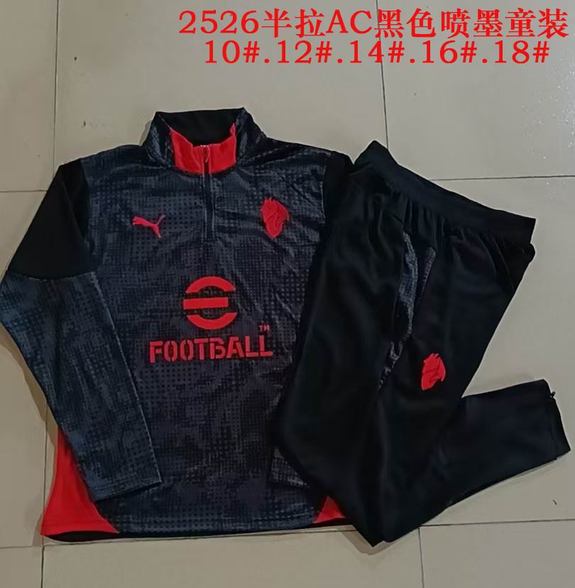 2025-2026 AC Milan black kid Soccer uniforms with Long Trousers E25198
