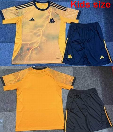 2025-2026 Roma club yellow blue kid soccer jerseys away