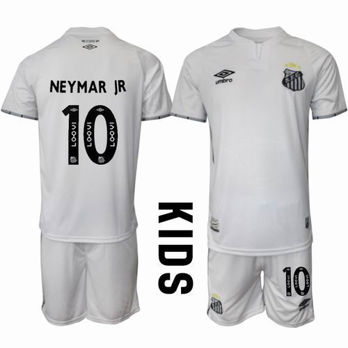 2025-2026 Santos FC #10 NEYMAR JR white kid soccer jerseys home