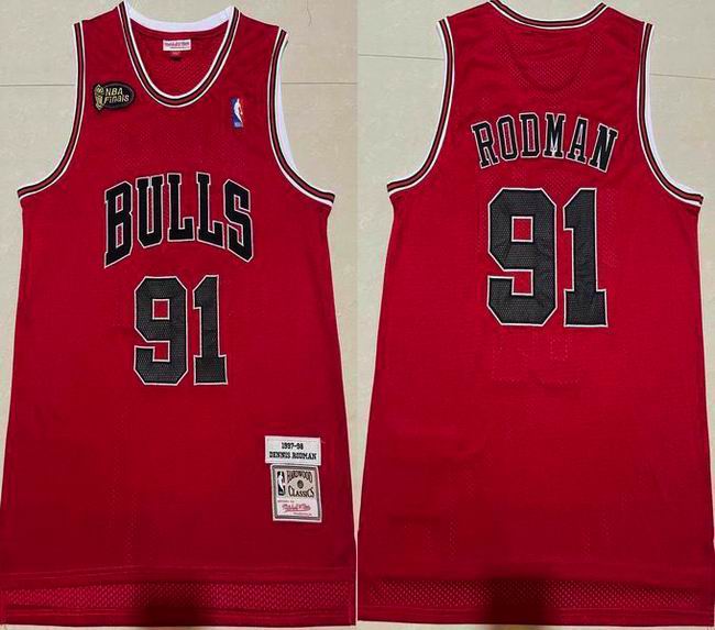 Chicago Bulls #91 Dennis Rodman red Throwback nba basketball jerseys with finals patch-XD