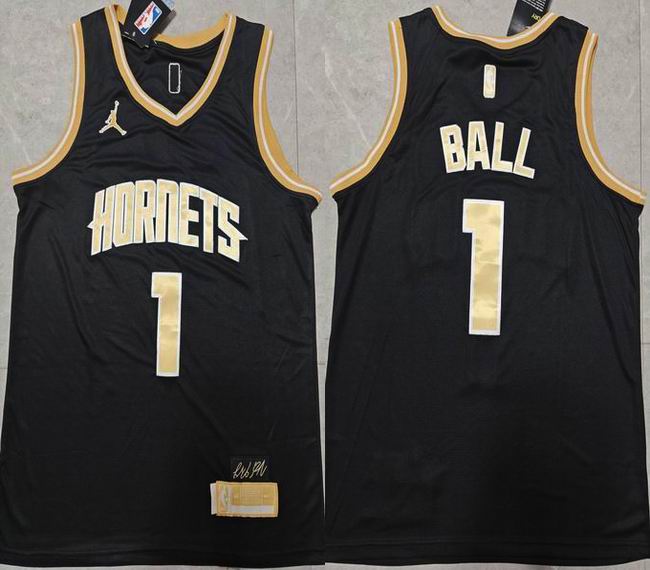 New Orleans Hornets #1 LaMelo Ball black gold nba Jerseys -XD