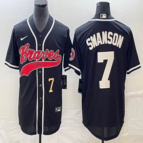 Nike Atlanta Braves #7 Dansby Swanson black MLB Baseball jerseys Joint name-BD 01