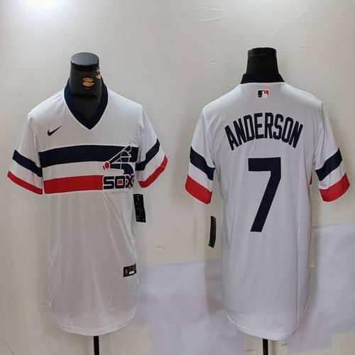 Nike Chicago White Sox #7 Tim Anderson white throwback majestic Baseball Jersey -BD