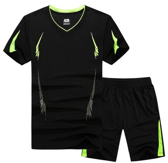 Sportswears Summer Sport Suits Men Hiking Running T-Shirts With Shorts-black