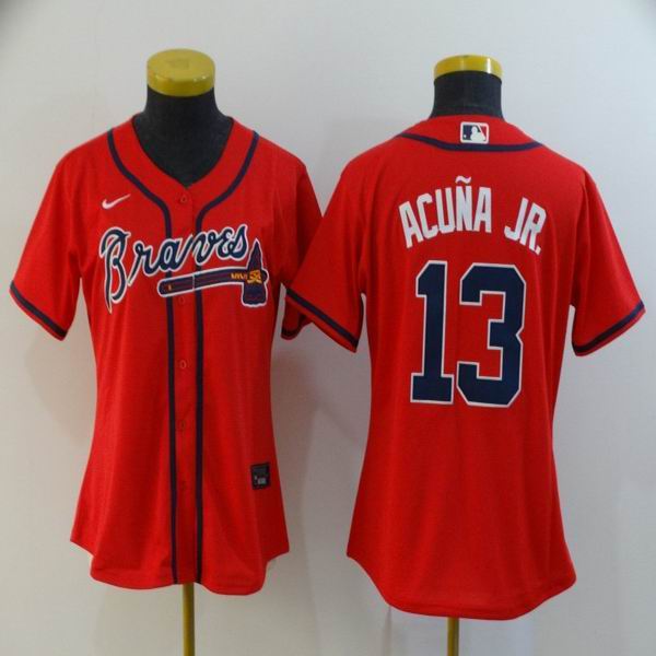 Women Nike Atlanta Braves #13 Ronald Acuna Jr. red majestic baseball jersey