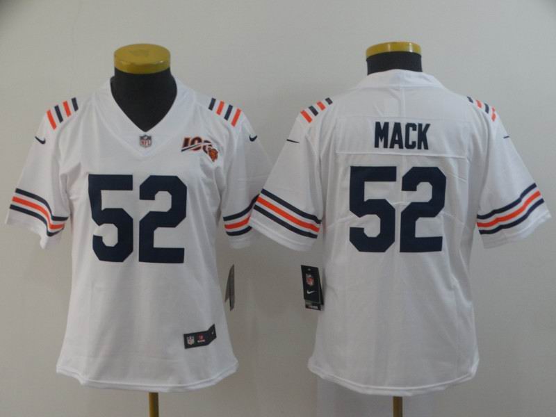 Women Nike Bears #52 Khalil Mack white Color Rush Limited Jersey 100th patch