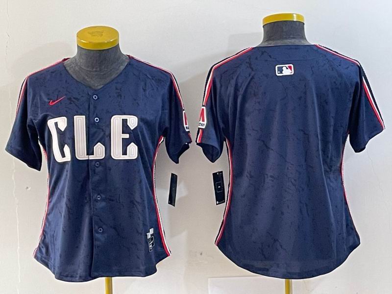 Women Nike Cleveland Indians blank blue majestic baseball jersey-BD 06