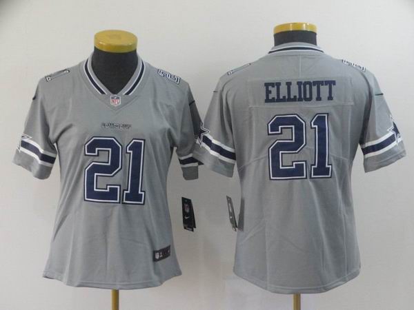 Women Nike Dallas Cowboys #21 Ezekiel Elliott gray NFL Jersey Inverted version