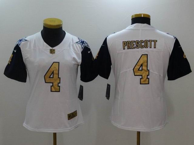 Women Nike Dallas Cowboys #4 Dak Prescott White Gold Color Rush Limited Jersey