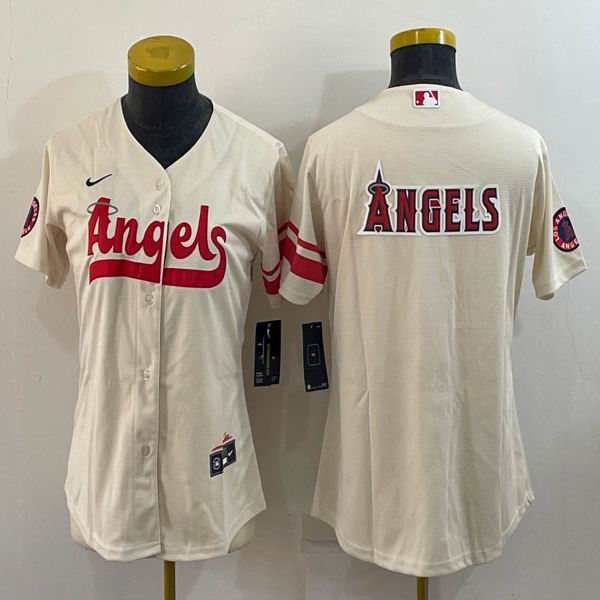 Women Nike Los Angeles Angels blank beige majestic baseball-BD 01