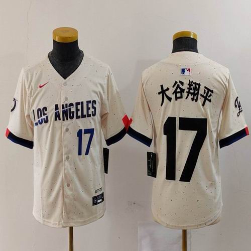 Women Nike Los Angeles Dodgers #17 Shohei Ohtani beige fashion MLB baseball Jersey 003