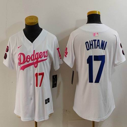 Women Nike Los Angeles Dodgers #17 Shohei Ohtani white pink fashion MLB baseball Jersey-Joint name-BD 01