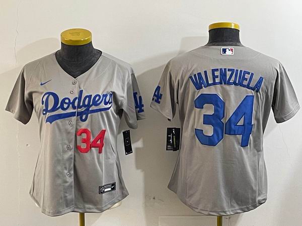 Women Nike Los Angeles Dodgers #34 Fernando Valenzuela gray MLB baseball Jersey 01
