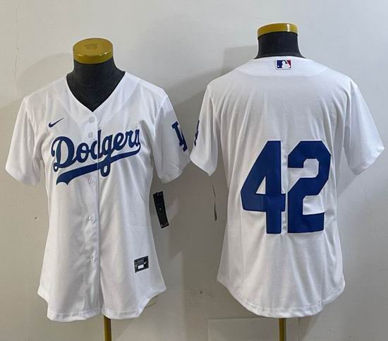 Women Nike Los Angeles Dodgers 42 Jackie Robinson white baseball jersey-BD 01