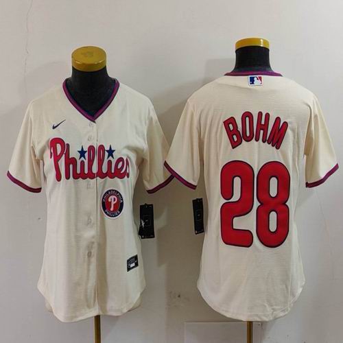 Women Nike Philadelphia Phillies #28 Alec Bohm beige majestic baseball jersey 01