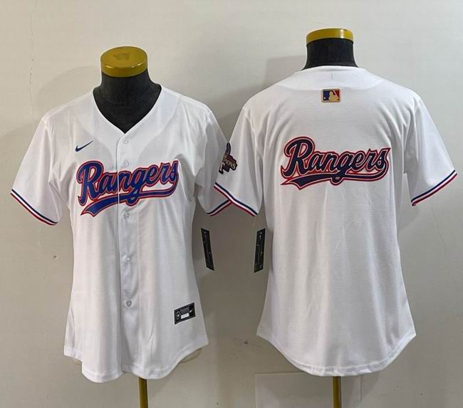 Women Nike Texas Rangers blnak white majestic baseball jerseys Champion patch-BD 02